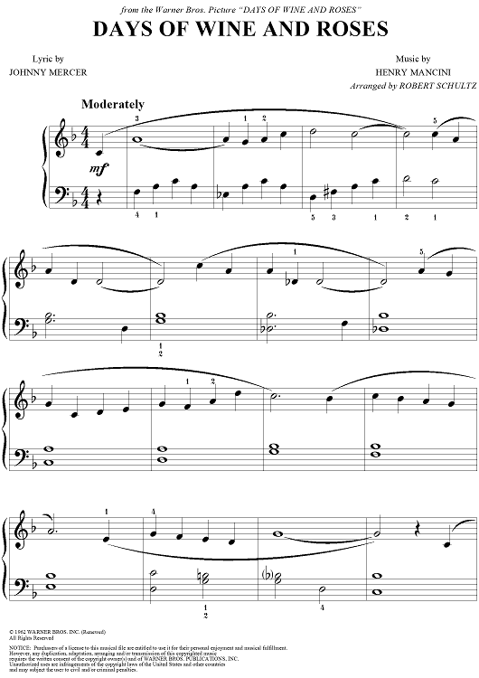"Days of Wine and Roses" Sheet Music by Henry Mancini