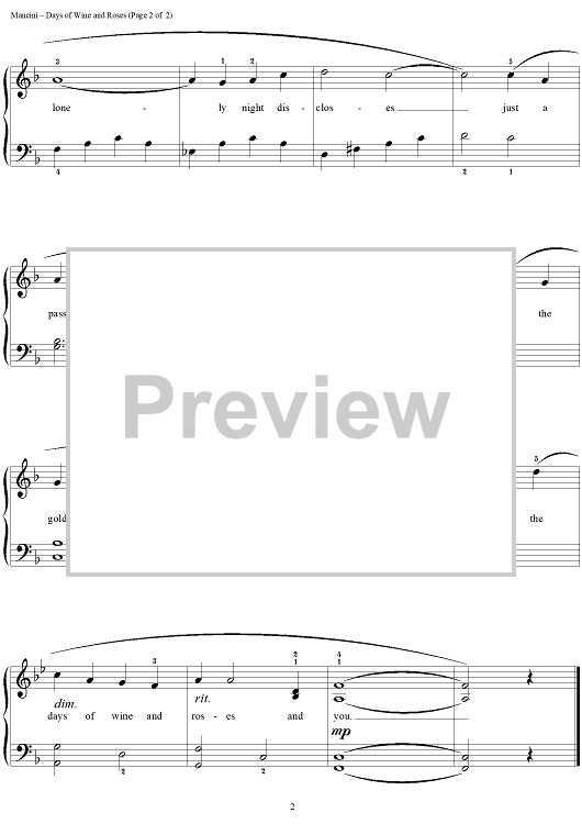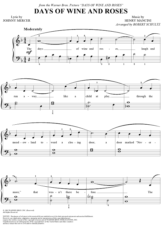 "Days of Wine and Roses" Sheet Music by Henry Mancini
