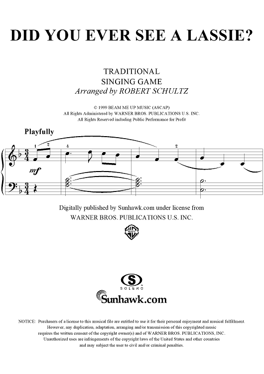 "Did You Ever See a Lassie?" Sheet Music by Traditional