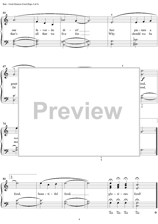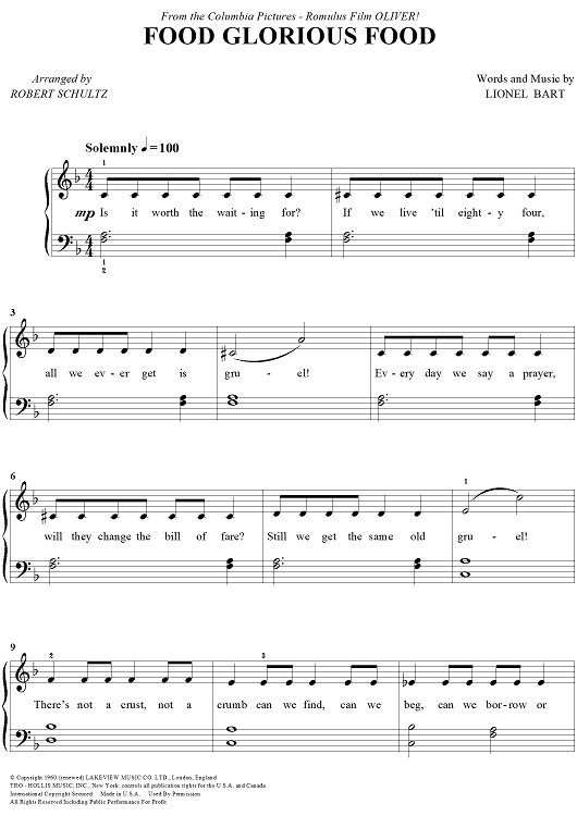"Food Glorius Food" Sheet Music by Lionel Bart