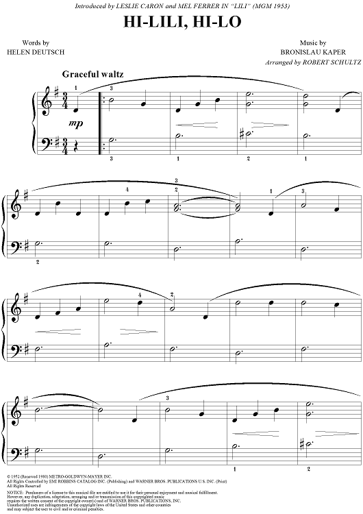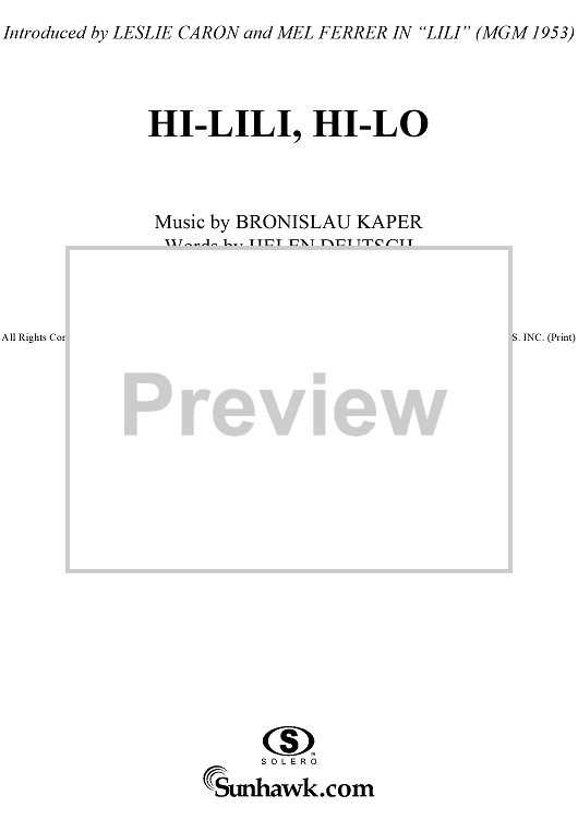 "Hi-Lili, Hi-Lo" Sheet Music by Bronislau Kaper