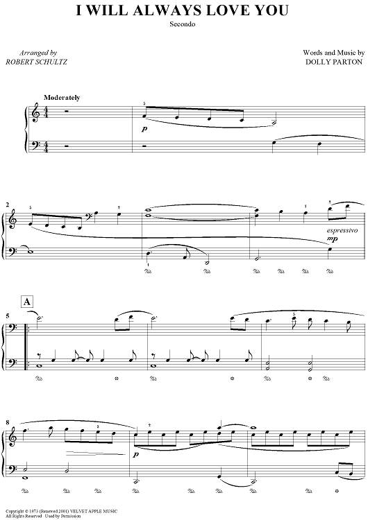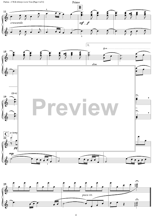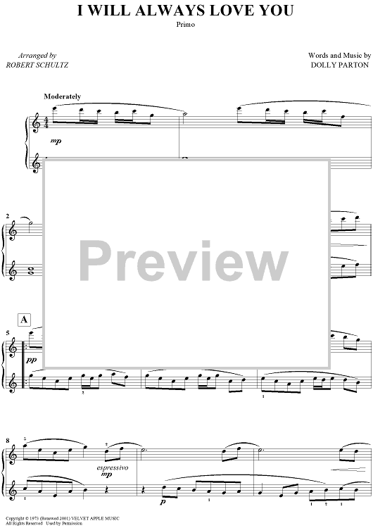 "I Will Always Love You" Sheet Music by Dolly Parton