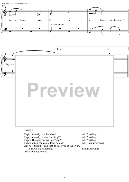"I'd Do Anything" Sheet Music by Lionel Bart