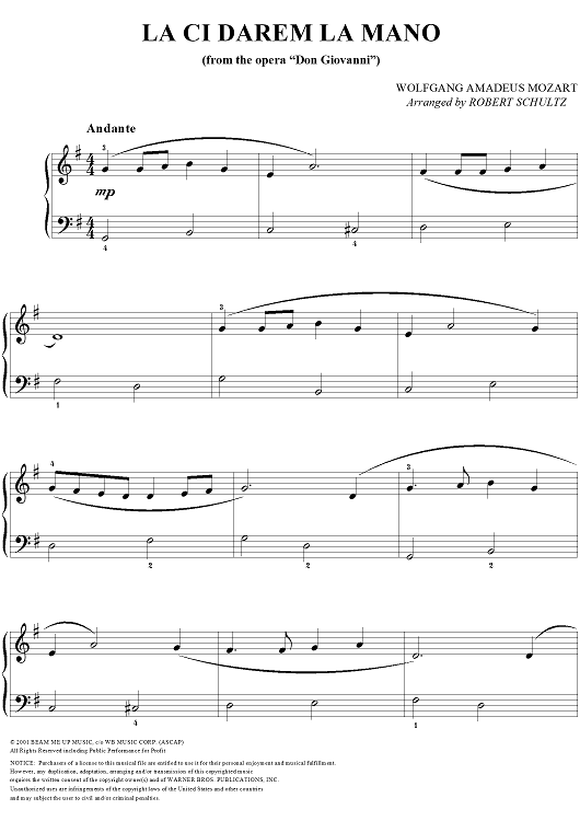"La Ci Darem La Mano" Sheet Music by Wolfgang Amadeus Mozart