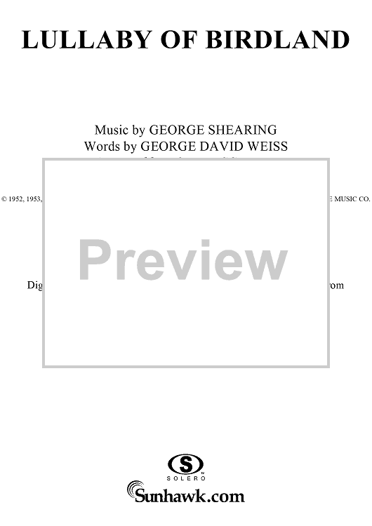 "Lullaby of Birdland" Sheet Music by George Shearing
