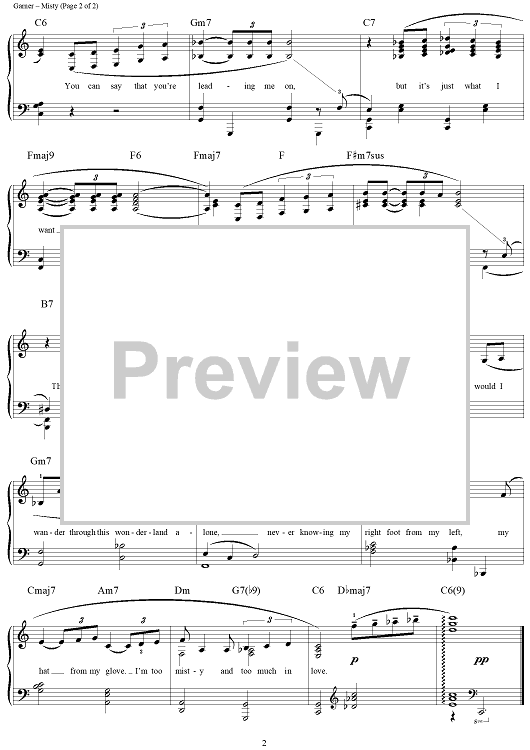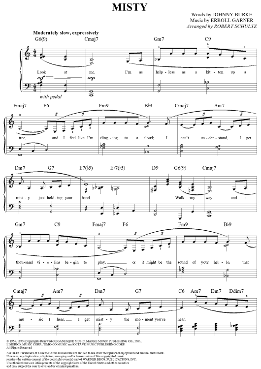 "Misty" Sheet Music by Erroll Garner