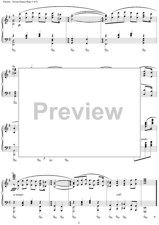 "Nessun Dorma (from Turandot)" Sheet Music by Giacomo Puccini