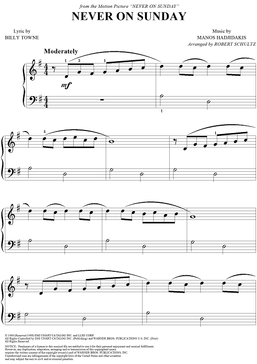 "Never on Sunday" Sheet Music by Manos Hadjidakis