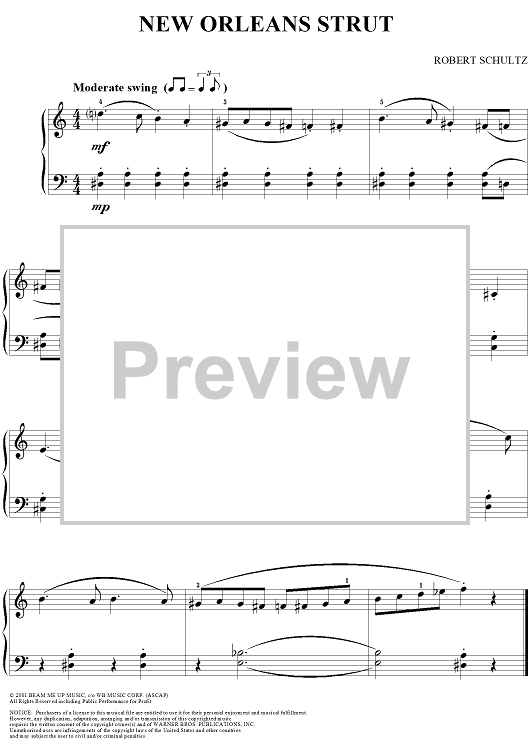 Digital Sheet Music for New Orleans Strut by Robert Schultz scored for Easy Piano/Vocal; id:288757