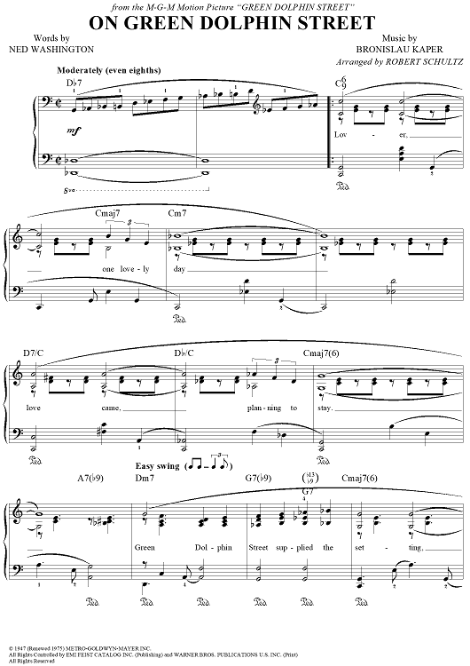 "On Green Dolphin Street" Sheet Music by Bronislau Kaper