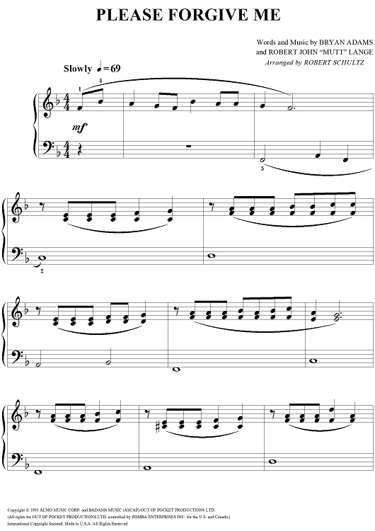 "Please Forgive Me" Sheet Music by Bryan Adams