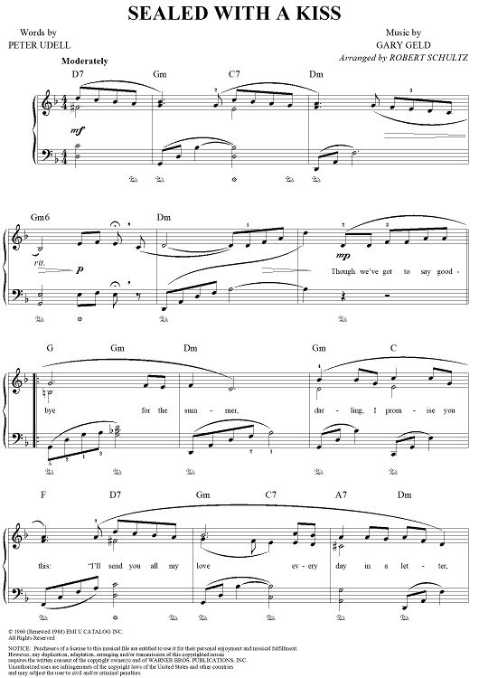 "Sealed with a Kiss" Sheet Music by Brian Hyland