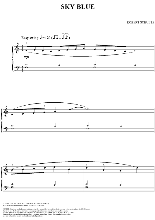 Digital Sheet Music for Sky Blue by Robert Schultz scored for Easy Piano/Vocal; id:288645