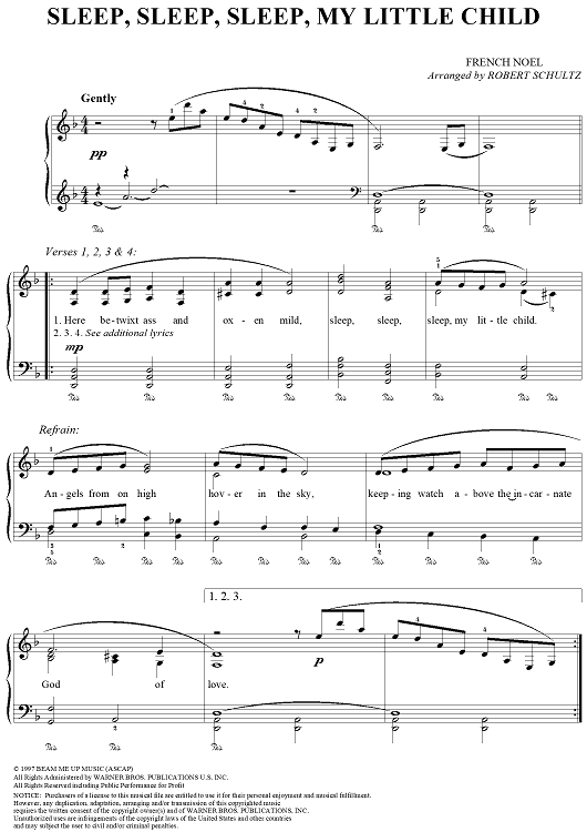 "Sleep, Sleep, Sleep, My Little Child" Sheet Music by Traditional