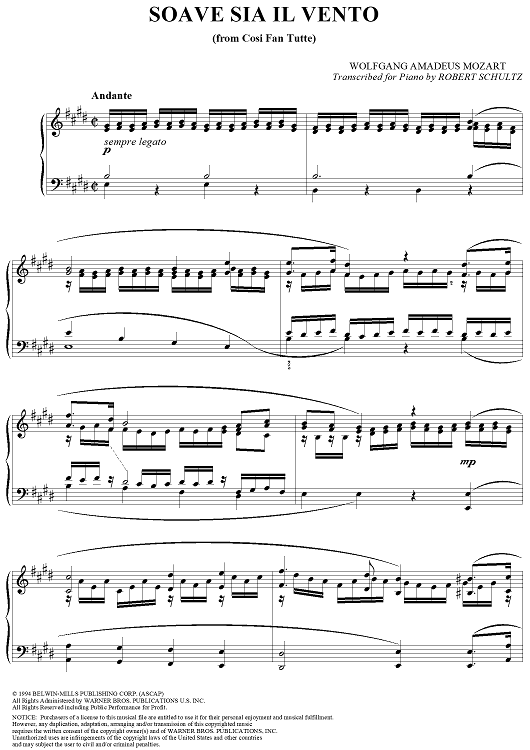 "Soave Sia Il Vento" Sheet Music by Wolfgang Amadeus Mozart
