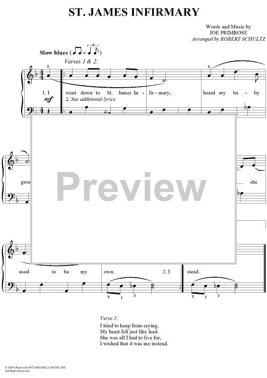 "St. James Infirmary" Sheet Music by Joe Primrose