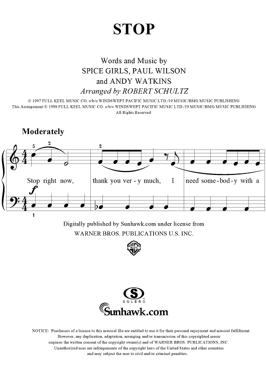 "Stop" Sheet Music by Spice Girls