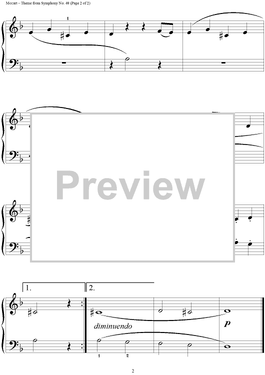 "Symphony No. 40 (Theme)" Sheet Music by Wolfgang Amadeus Mozart