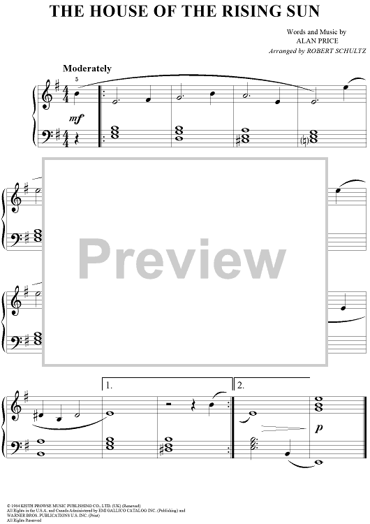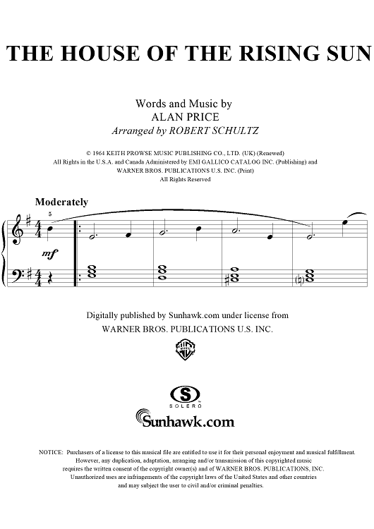 "The House of the Rising Sun" Sheet Music by Alan Price