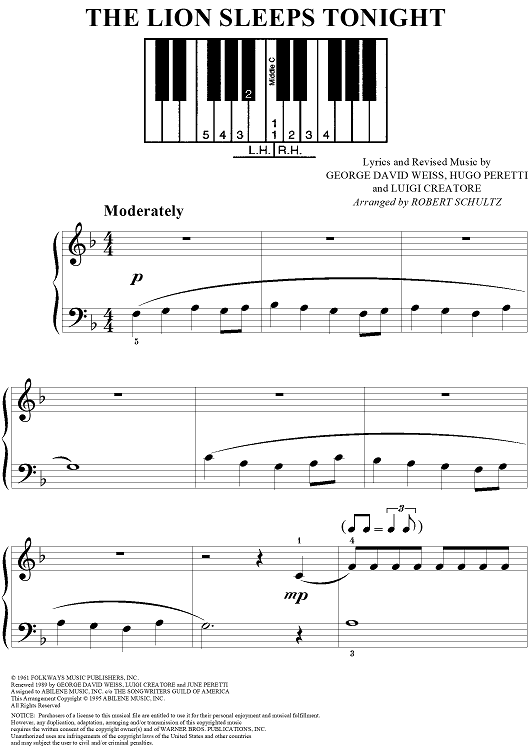 "The Lion Sleeps Tonight" Sheet Music by George Weiss