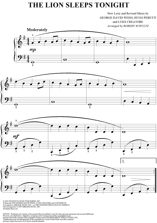 "The Lion Sleeps Tonight" Sheet Music by Luigi Creatore