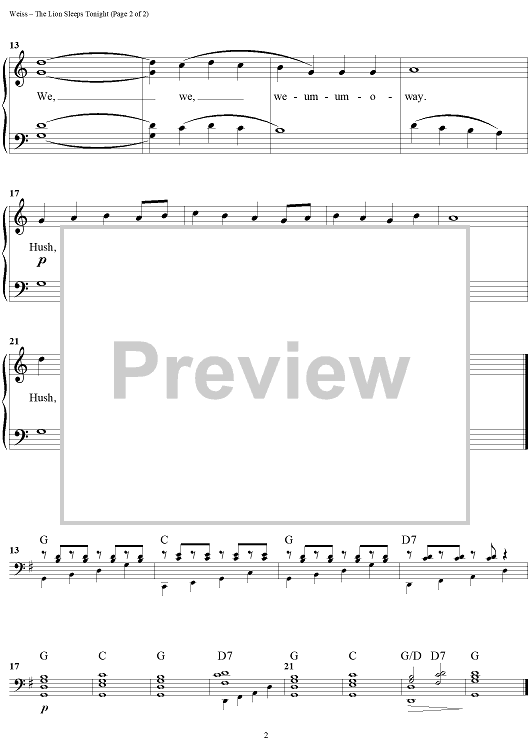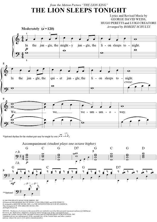"The Lion Sleeps Tonight" Sheet Music by Luigi Creatore