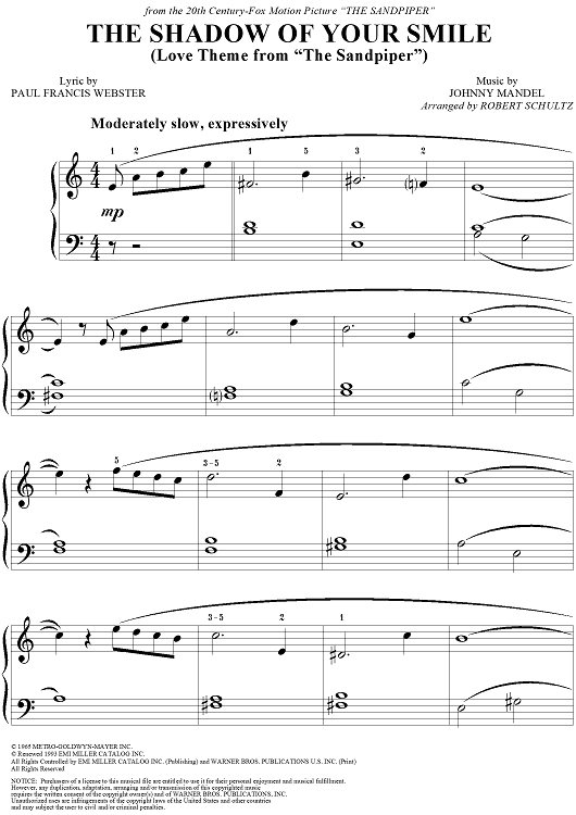"The Shadow of Your Smile" Sheet Music by Johnny Mandel