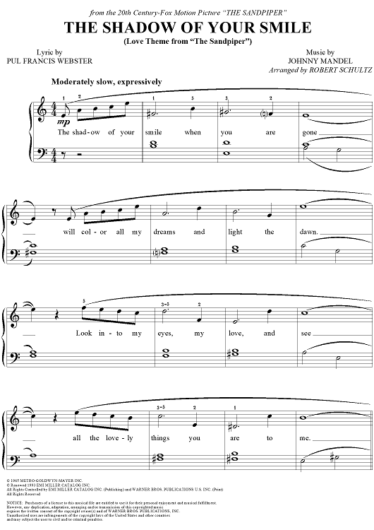 "The Shadow of Your Smile" Sheet Music by Johnny Mandel