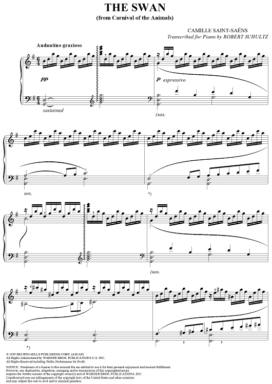 "The Swan, from "Carnival of the Animals"" Sheet Music by Camille Saint-Saëns