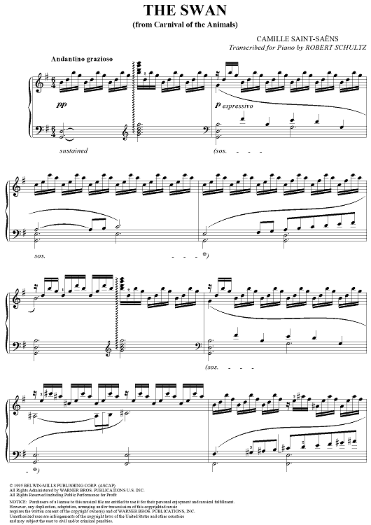 "The Swan" Sheet Music by Camille Saint-Saëns