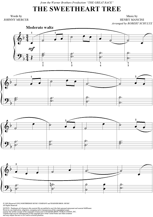 "The Sweetheart Tree" Sheet Music by Henry Mancini