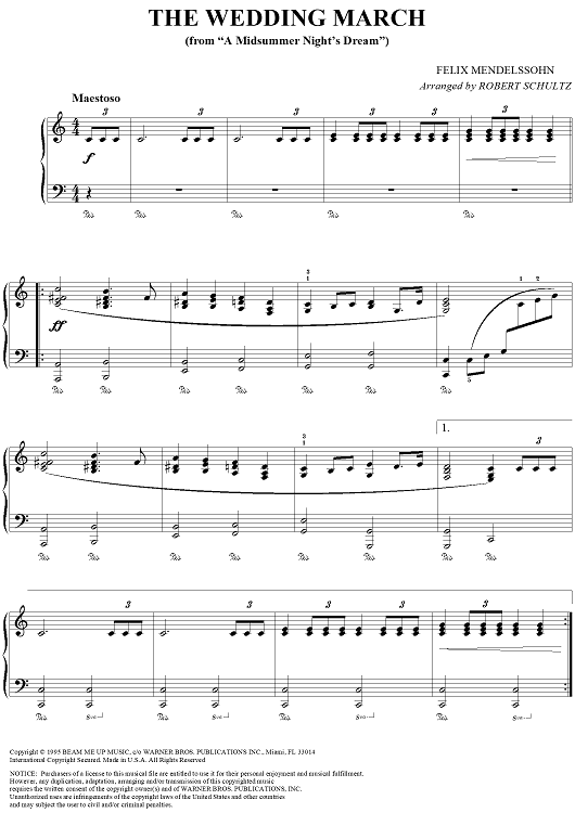 "The Wedding March" Sheet Music by Felix Mendelssohn