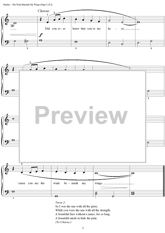 "The Wind Beneath My Wings (from the Original Motion Picture Soundtrack "Beaches")" Sheet Music by Larry Henley