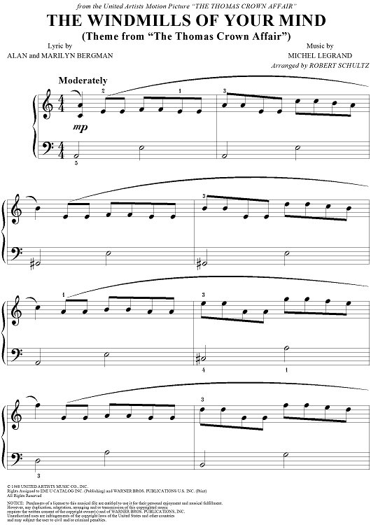 "The Windmills of Your Mind" Sheet Music by Michel LeGrand