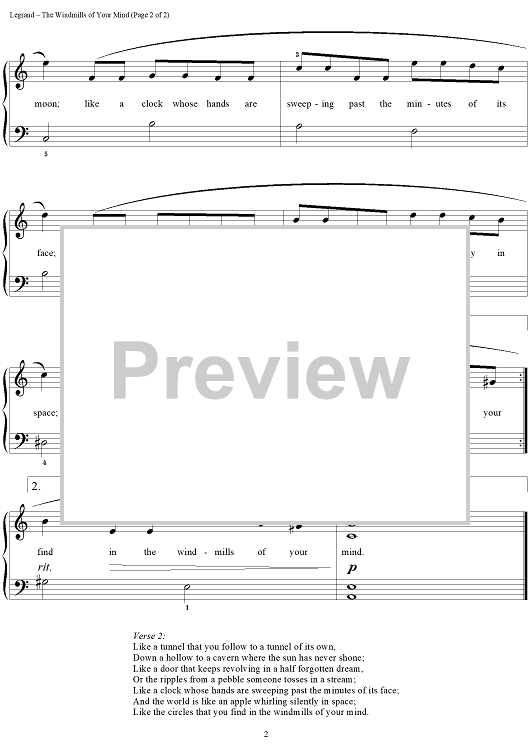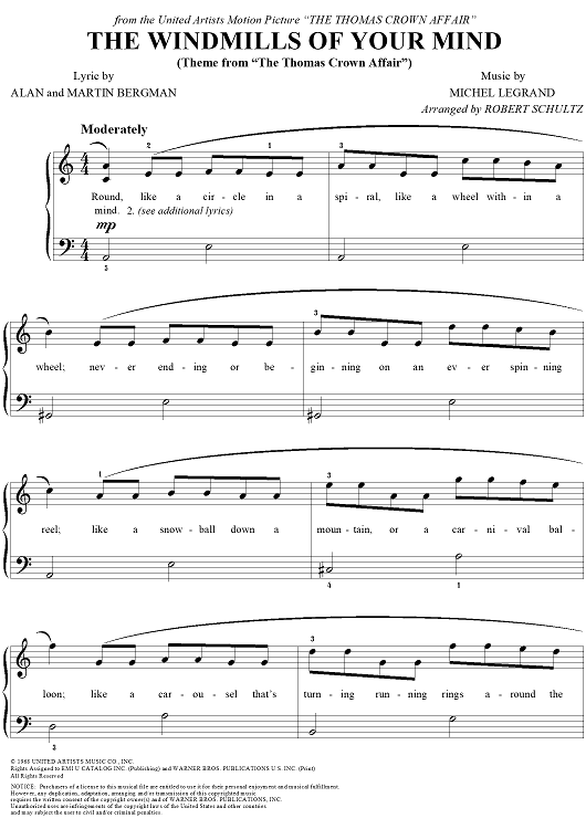 "The Windmills of Your Mind" Sheet Music by Michel LeGrand