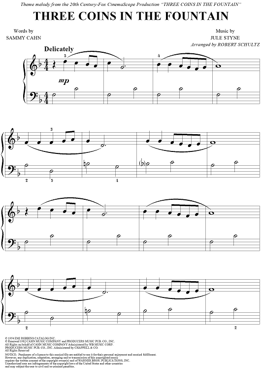 "Three Coins in the Fountain" Sheet Music by Jule Styne