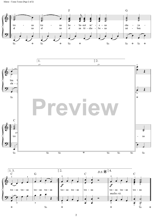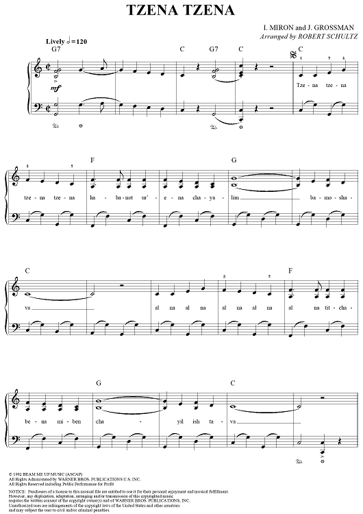 "Tzena Tzena" Sheet Music by Issachar Miron