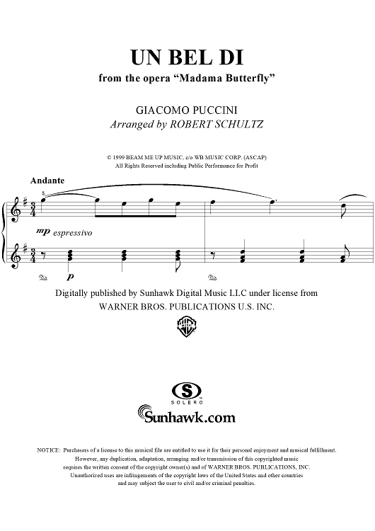 "Un Bel Di" Sheet Music by Giacomo Puccini
