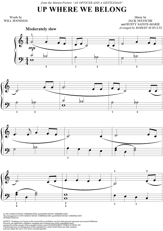 "Up Where We Belong" Sheet Music by Jack Nitzsche