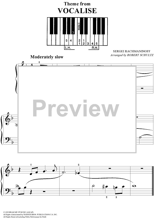"Vocalise (Theme)" Sheet Music by Sergei Rachmaninoff