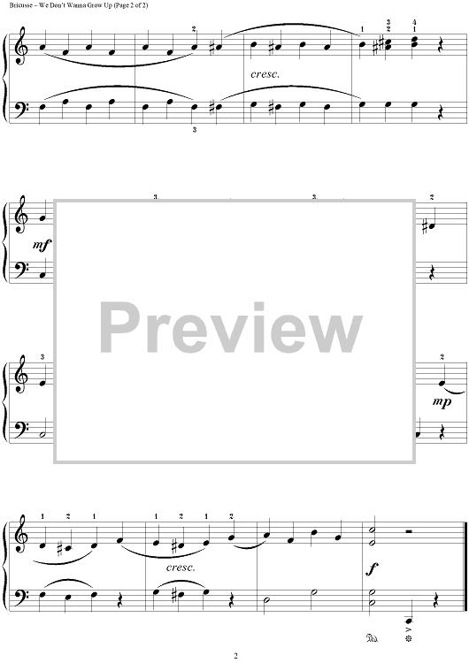 "We Don't Wanna Grow Up" Sheet Music by Leslie Bricusse