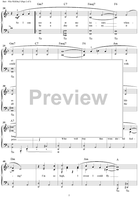 "Who Will Buy? - Easy Piano Vocal" Sheet Music by Lionel Bart