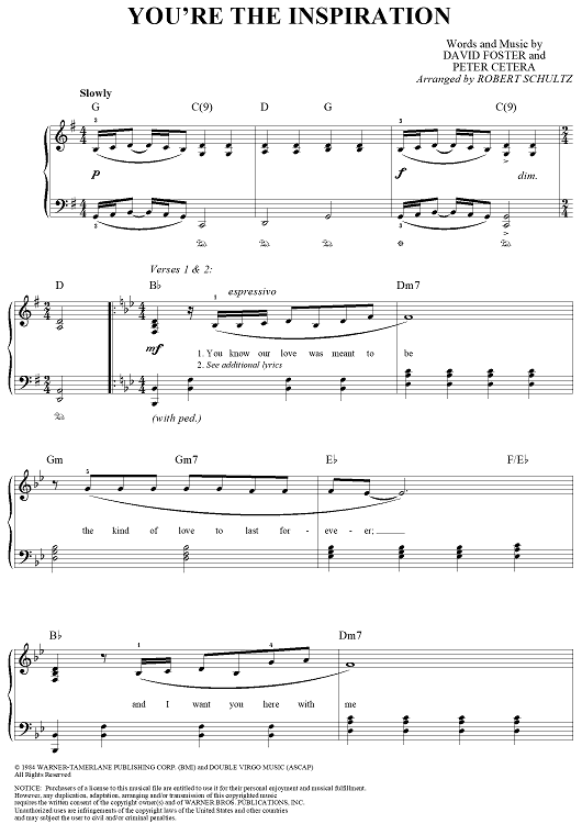 "You're the Inspiration" Sheet Music by Peter Cetera