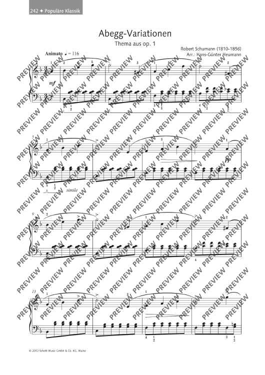 Digital Sheet Music for Abegg-Variationen by Robert Schumann, Hans-Guenter Heumann scored for Piano; id:499412