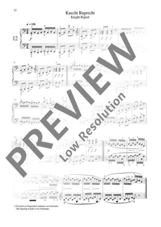 Robert Schumann’s Album für die Jugend (‘Album for the Young’) was written in 1848 as a Christmas present for his children and was originally entitled Weihnachtsalbum für Kinder, die gern Clavier spielen (‘Christmas Album, for children who like to play the piano’). The 43 pieces combine pedagogic aims with artistic quality, a rare combination in the musical repertoire. Our new edition contains nine pieces which were missing in the first edition: For the Very Small - Doll's Lullaby - In a Gondola - Guckoo in Hiding - Catch Me if You Can - Venetian Lagoon - Bear-Dance - Rebus - [Little Waltz]