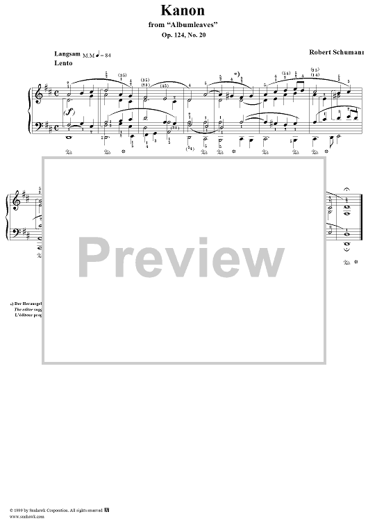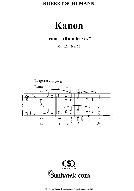 Digital Sheet Music for Albumblätter, No. 20: Kanon (Canon) by Robert Schumann scored for Piano Solo; id:258287