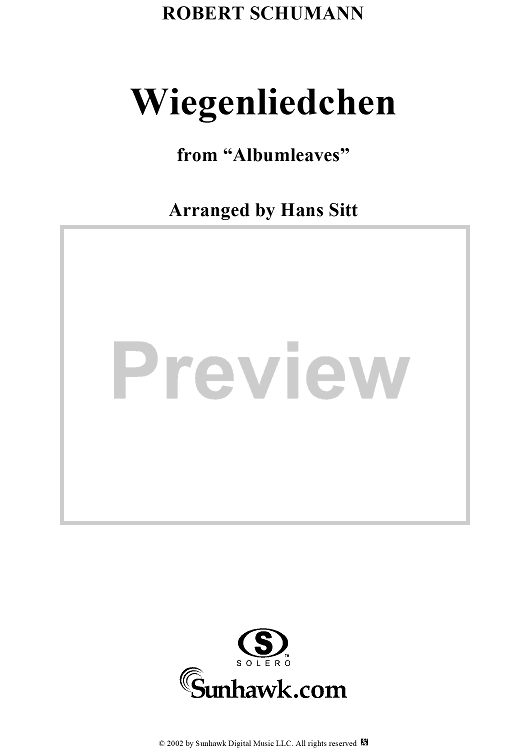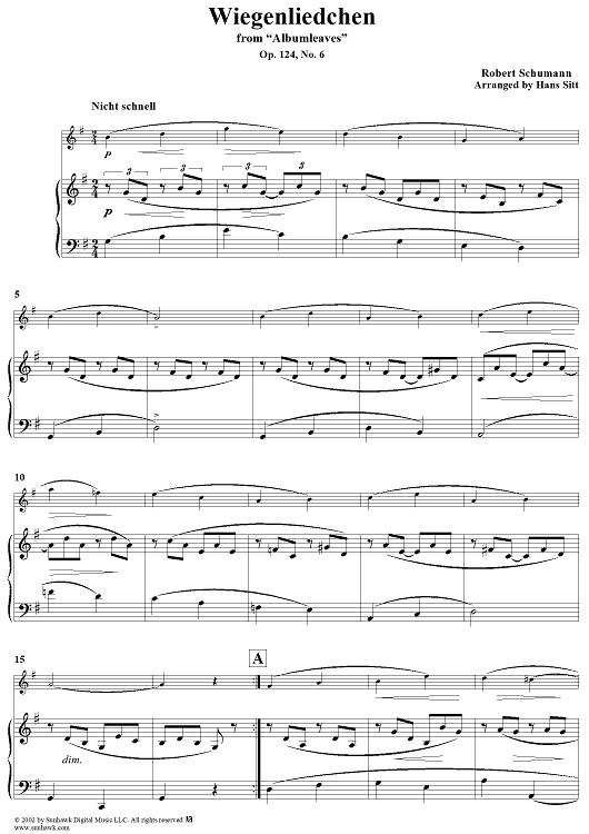 Digital Sheet Music for Albumleaves, Op. 124, No. 06, "Wiegenliedchen" (Cradle Song), - Piano by Hans Sitt, Robert Schumann scored for Violin/Piano; id:258565