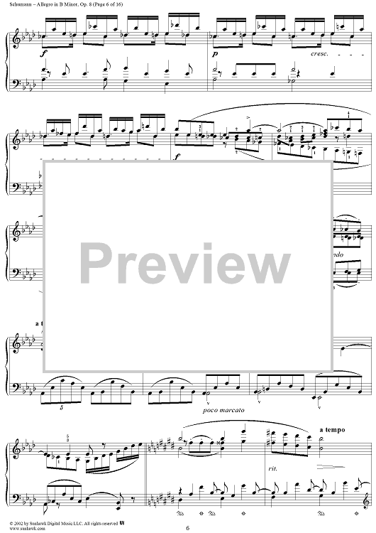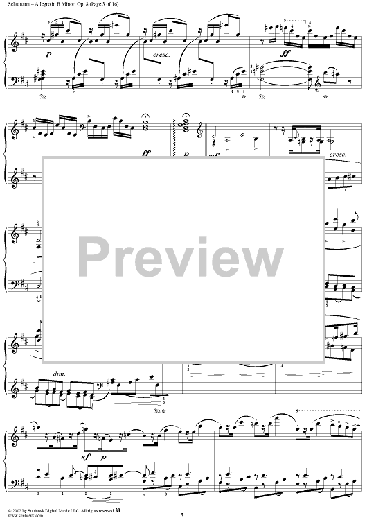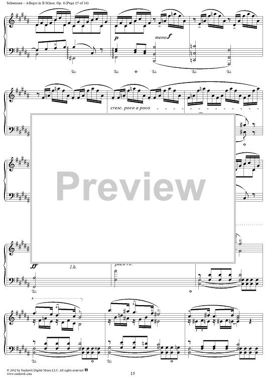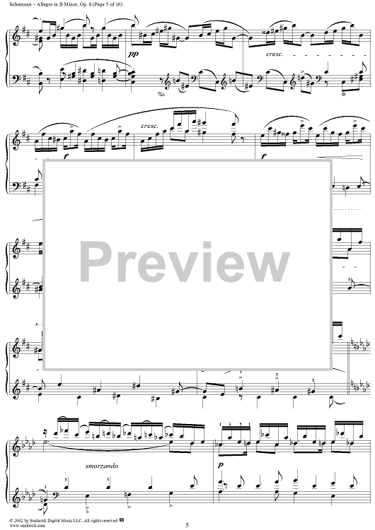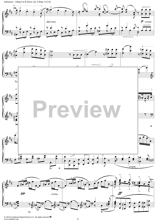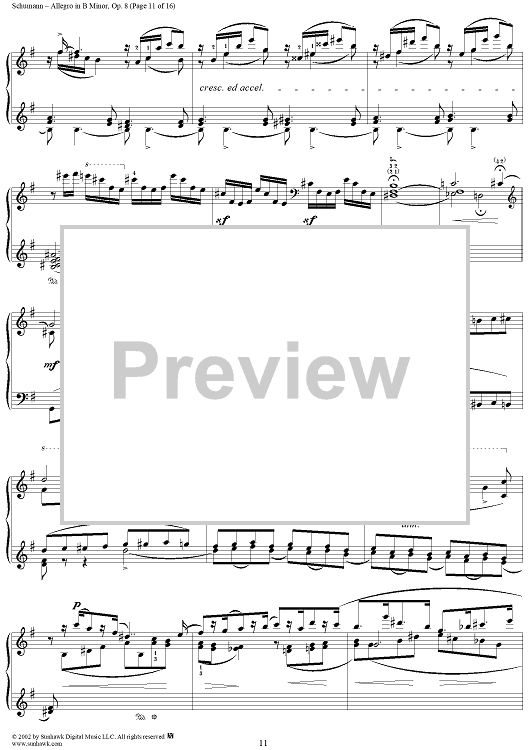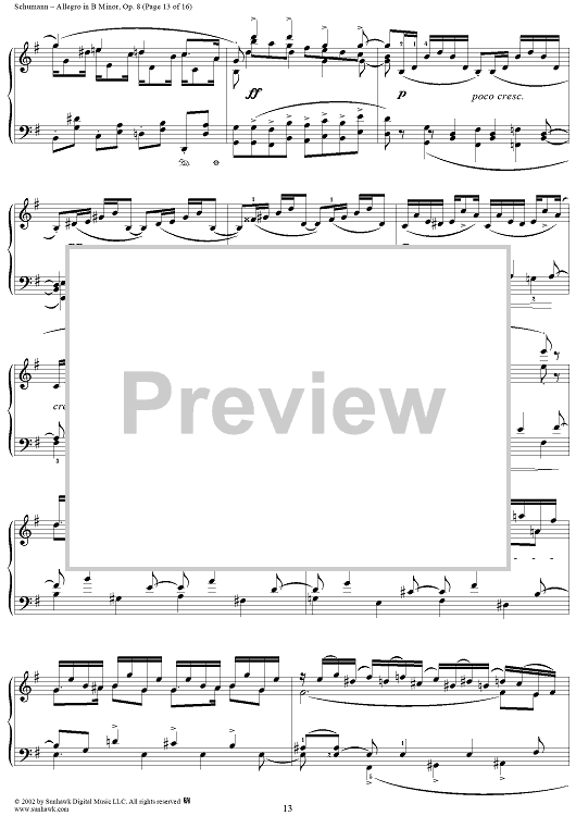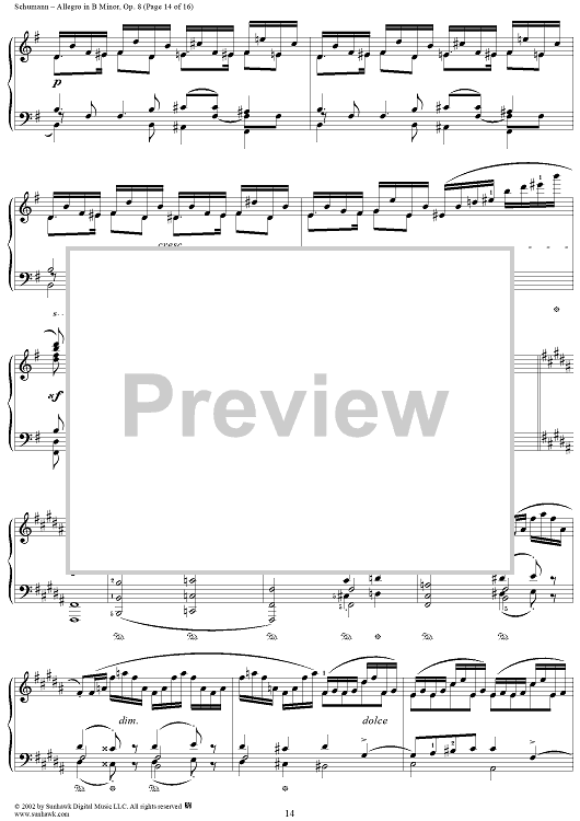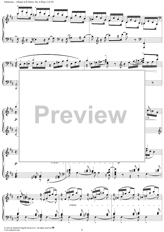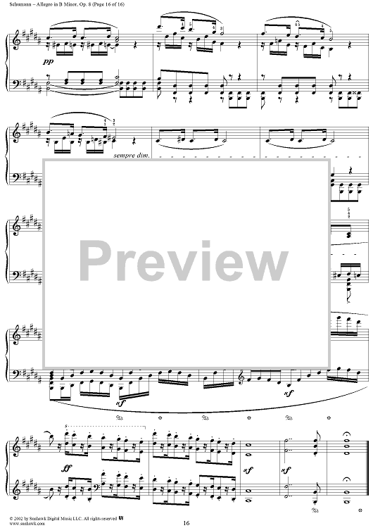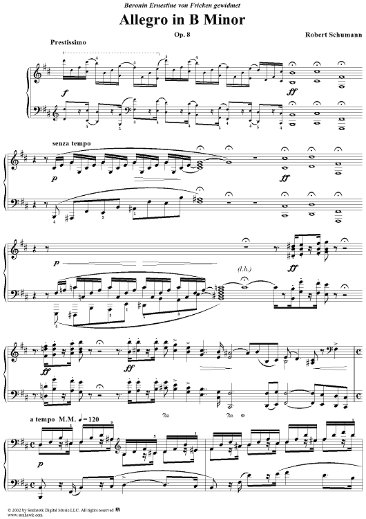Digital Sheet Music for Allegro in B Minor, Op. 8 by Robert Schumann scored for Piano Solo; id:258219