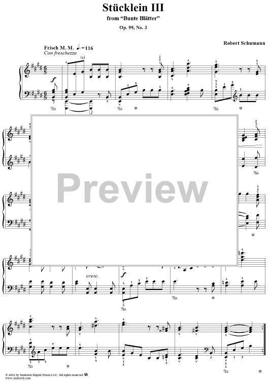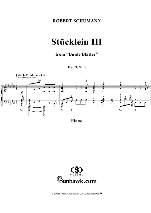 "Bunte Blätter, Op. 99, No. 03, Stücklein III (Three Little Pieces, III.)" Sheet Music by Robert Schumann