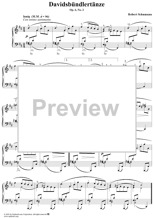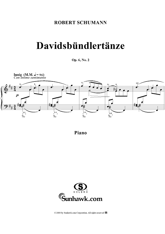 Digital Sheet Music for Davidsbündlertänze, Op. 6, No. 02 (2nd Edition, 1850) by Robert Schumann scored for Piano Solo; id:258168